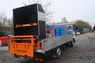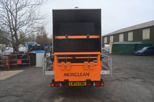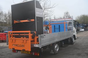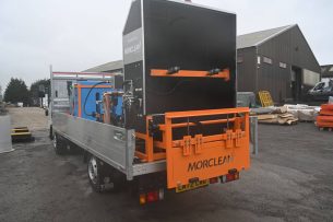 The Bin Wash FLITE from Morclean is a self-contained bin wash machine that uses 2 automated cleaning heads to clean the insides of wheelie bins without the need for manual washing with a lance by the operator. The system can be fitted to most flat bed vans such as a drop side or chassis cab etc.