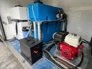Once in position, powerful rotating cleaning heads carry out the wash automatically, powered by an engine driven high pressure pump.