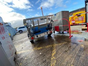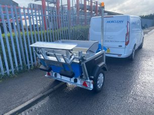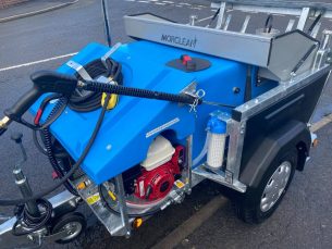 The hi-spec petrol powered mobile trailer mounted wheelie bin washing machine